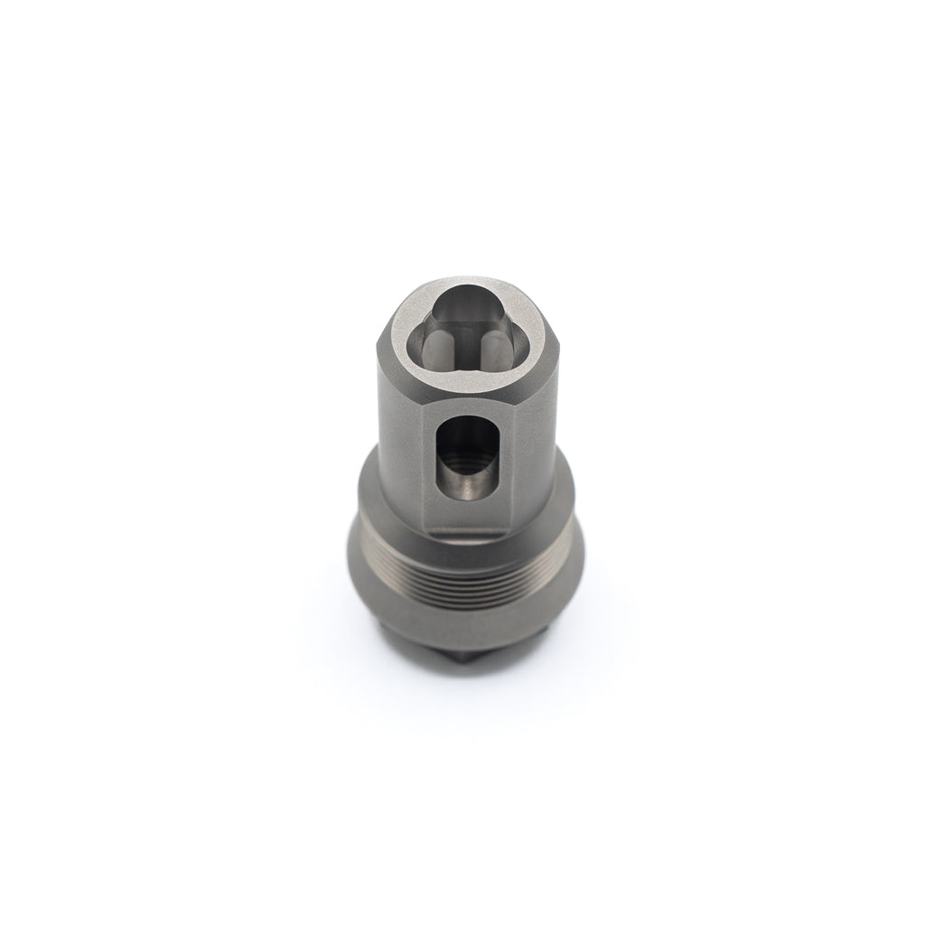 Upgrade your suppressor setup with this rugged, performance-optimized muzzle brake. Purpose-built for Thunder Beast® CB-series and Banish 30 Gold, it requires no timing hardware—install, torque, and go. The stainless steel construction and H900 heat treatment guarantee tolerance-holding durability under harsh conditions. Whether you're dialing in precision groups or running heavy suppression, this brake delivers rock-solid alignment and recoil control, every time.